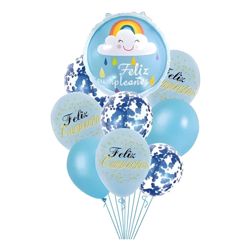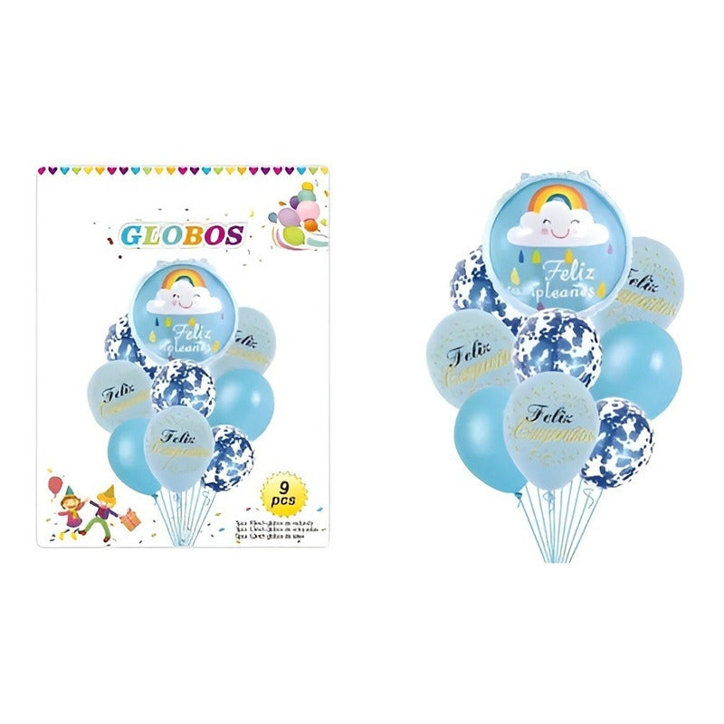 Set 9 Globos De Cumpleaños Decoracion De Cumpleaños Arcoiris Celeste