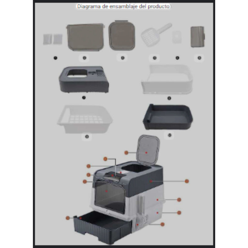 º La caja de arena para gatos completamente cerrada está hecha de material PP ligero y duradero, estable, de alta calidad y duradero para un largo tiempo de servicio. º La caja de arena con tapa extra grande y cierre plegable brinda una solución conveniente y que ahorra espacio para sus necesidades de arena. º Se puede plegar y guardar fácilmente cuando no se usa, perfecto para espacios pequeños o para viajar. º Caja de arena plegable La limpieza de la caja de arena es muy sencilla gracias a la tapa fácil de quitar y al cajón de arena a prueba de salpicaduras. Simplemente levante la tapa, vacíe el cajón y límpielo rápidamente. Mantener el área de arena de su gato limpia e higiénica nunca ha sido tan fácil. º El cajón de la caja de arena plegable está diseñado para mantener la basura fuera de la caja, minimizando el desorden y facilitando la limpieza. Di adiós a la basura suelta y hola a un área de basura más limpia. ºEl diseño cerrado de la caja de arena plegable brinda privacidad a su gato, creando un ambiente cómodo y seguro para que trabajen. También ayuda a suprimir los olores y evita que la basura deje un rastro, manteniendo su hogar limpio y fresco. º La caja de arena plegable viene con una práctica pala de plástico que le permite eliminar fácilmente los grumos y mantener la caja de arena fresca y sin olores. Con todo lo necesario para una experiencia de arena limpia y cómoda, esta caja de arena es imprescindible para los dueños de gatos. ° NO INCLUYE ARENA.