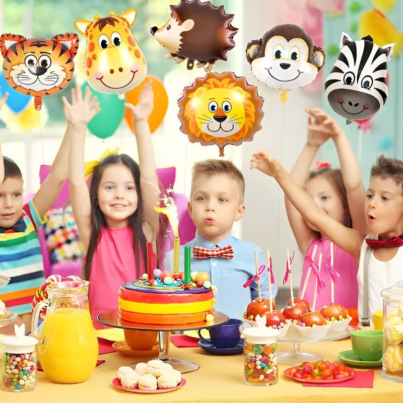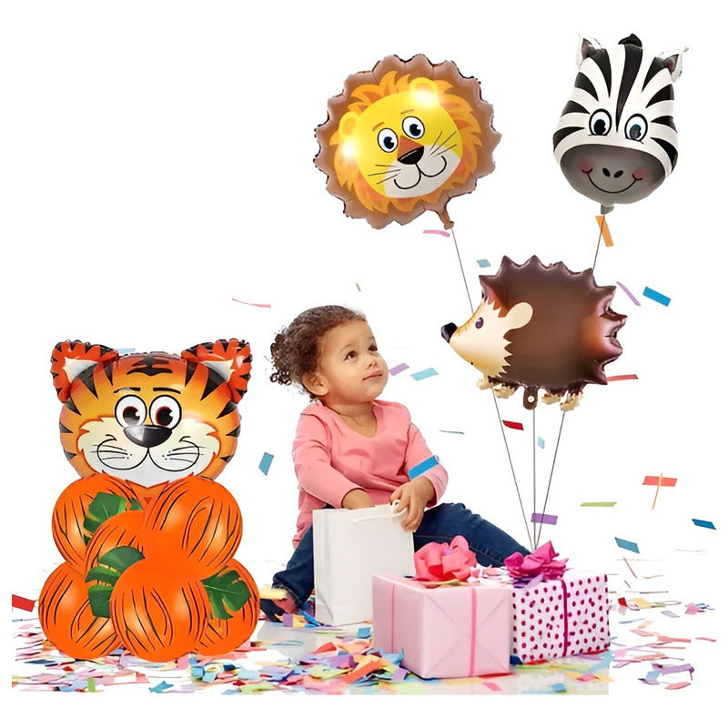 X5 Globos de Animales Metálicos º Tamaño de inflado: 45cm º Perfecto para cumpleaños de granja, temática de animales, para escuelas, pijamadas, etc... ° No tóxico y seguro y de alta calidad: estos globos de fiesta de la selva están hechos de papel metalizado, seguros y duraderos, seguros para los niños. ° Globos Metálicos grueso de calidad, nunca se estallan fácilmente. ° Estos globos se pueden llenar con aire y helio. ° Decoración perfecta para fiestas de safari: diseña tu propia fiesta de safari de la selva única y diferente con nuestros globos, para hacer que tu fiesta temática de animales sea un gran éxito para tu bebé y niños. Tu compra incluye: X5 Globos de Animales Metálicos