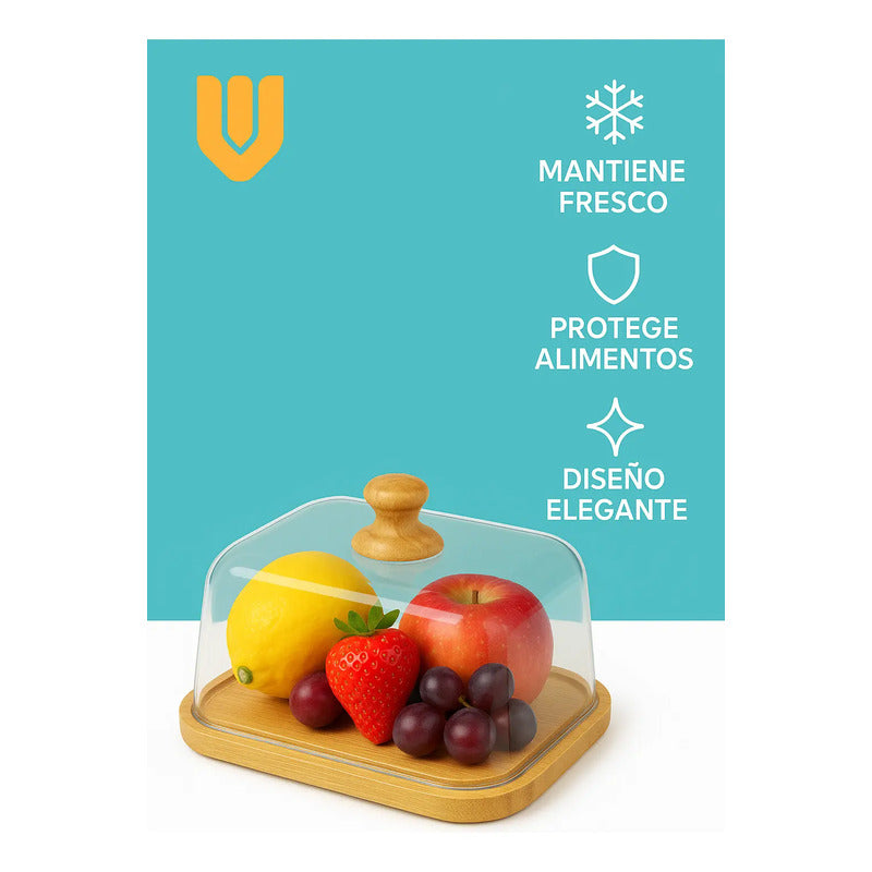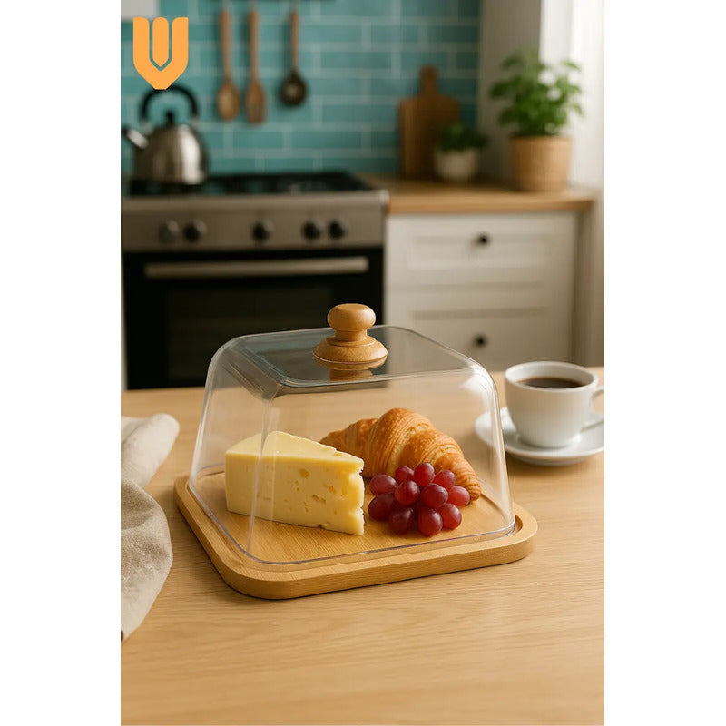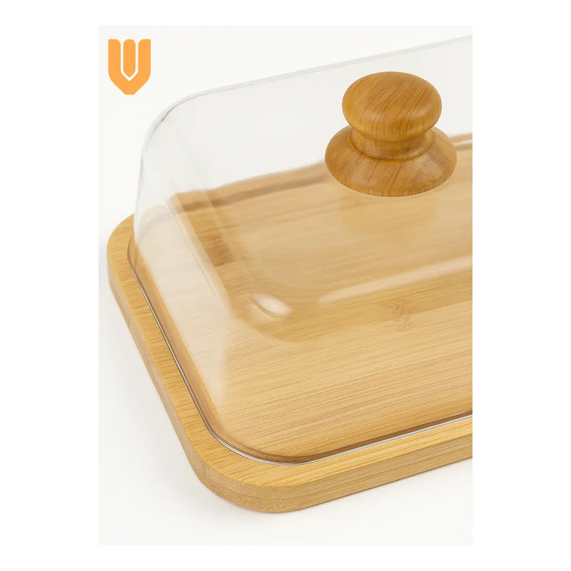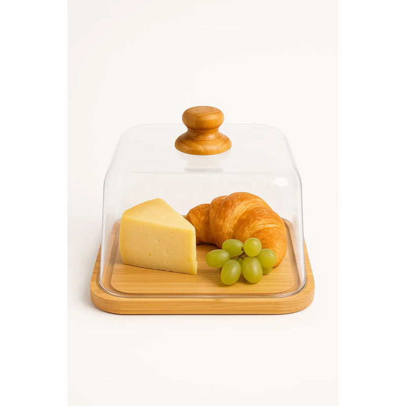 Modelo: Bandeja Cuadrada Bambu Ecologico 30x30cm Tapa Plastico Cupcakes Tortas Postres Eventos Cocina Reposteria