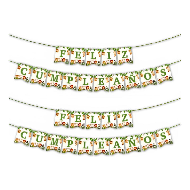 Banderín Guirnalda Safari Feliz Cumpleaños Banderín Safari Verde Musgo Safari