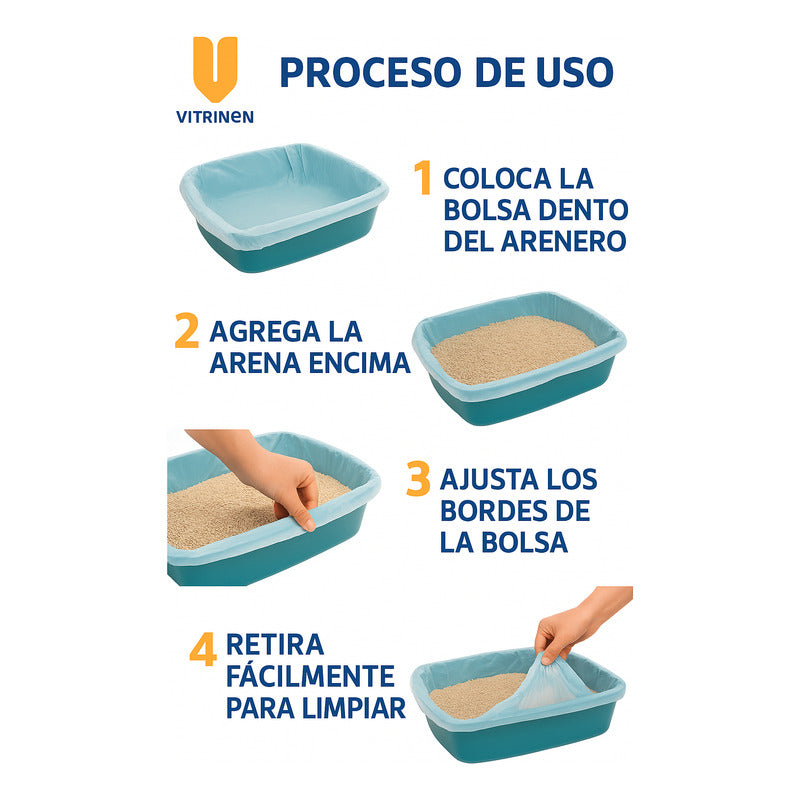 La Bolsa Arenero Gatos de Vitrineon Cl es la solución ideal para mantener la higiene de tu mascota de manera práctica y eficiente. Diseñada específicamente para bandejas abiertas, su tamaño grande permite un uso cómodo y adecuado para gatos de diferentes razas y tamaños. Estas bolsas desechables son perfectas para quienes buscan simplificar la limpieza del arenero, ya que su diseño facilita el manejo y la eliminación de desechos. Al no contar con pala ni sistema autolimpiante, se enfoca en ofrecer una experiencia directa y sin complicaciones. La calidad de los materiales asegura que las bolsas sean resistentes y confiables, evitando filtraciones y manteniendo el entorno de tu gato limpio. Con un uso sencillo, podrás dedicar más tiempo a disfrutar de la compañía de tu mascota y menos a las tareas de limpieza. Optar por las Bolsas Sanitarias Arenero Gato de Vitrineon Cl es elegir una opción práctica que se adapta a tu estilo de vida y al bienestar de tu gato. Mantén su espacio siempre limpio y ordenado con esta solución eficiente y accesible.