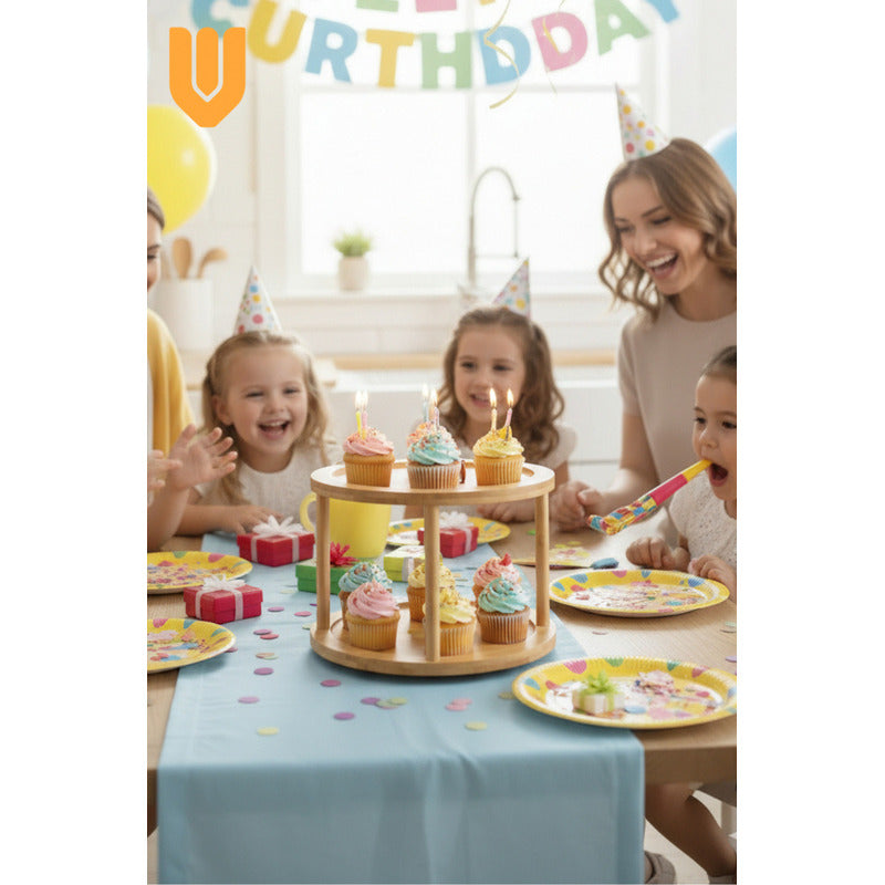 Porta Cupcake Giratorio Bambu Estante Organizador Dulces