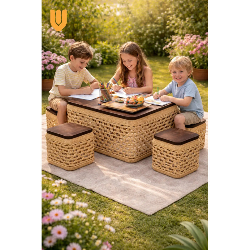 Modelo: Nido Multifuncional Ratan Puf Hogar Integrado Living Terraza Espacio Compacto Guardado Interno Diseño Natural