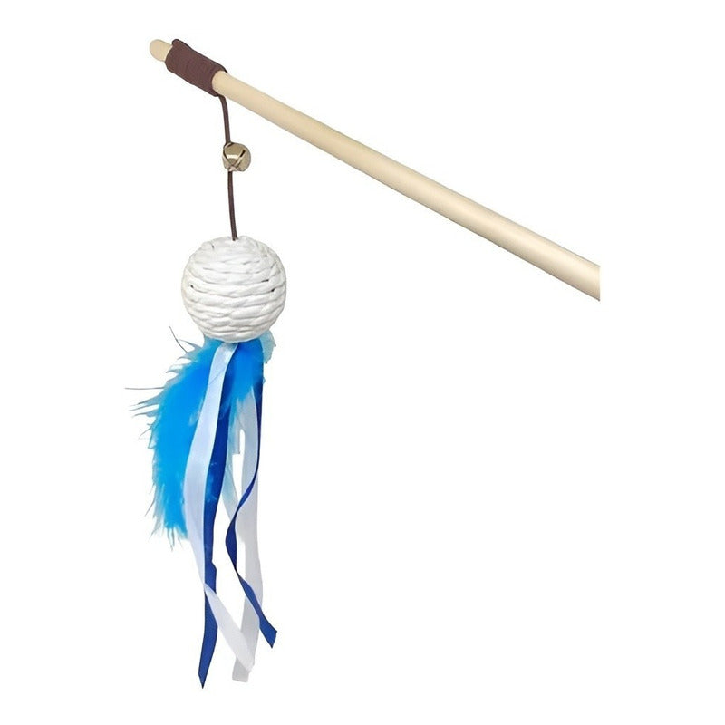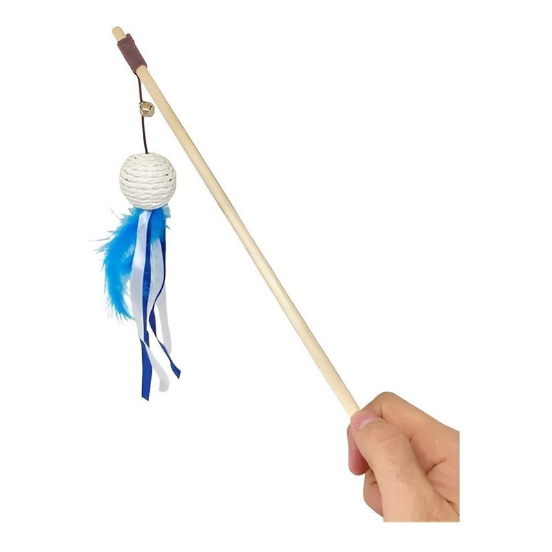 Juguete Para Gatos Varita ° Medidas: Varita Madera: 40cm largo x 1cm ancho. Pelota Con Campanita: 28cm Largo ° Los gatos se sentirán locos por las campanas de anillo, plumas voladoras y juguetes de tela. ° Fabricado con materiales naturales de madera, plumas, sisal. ° Cuerda larga elástica más activa para que los gatos jueguen. ° Ligero y duradero. Tu compra incluye: 1 Juguete Para Gatos Varita