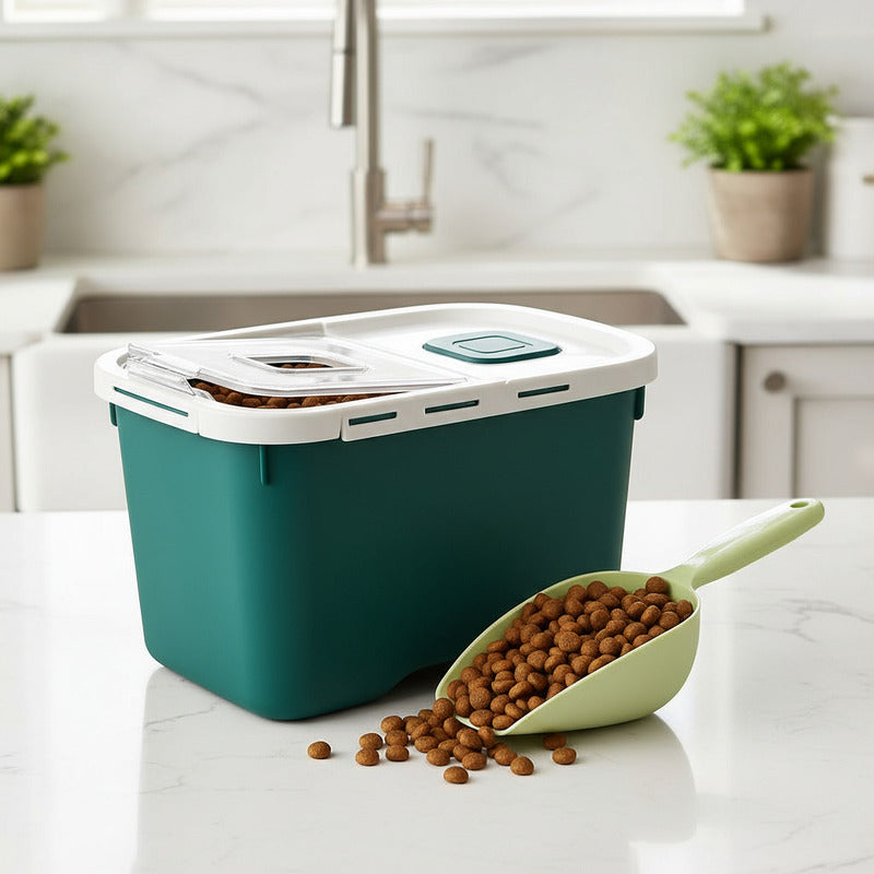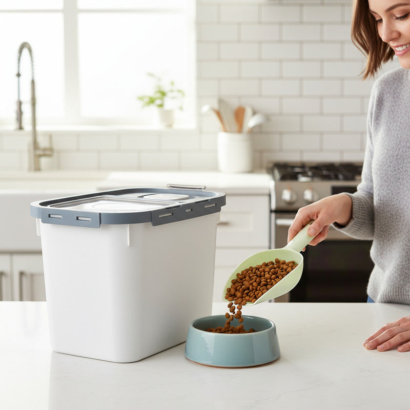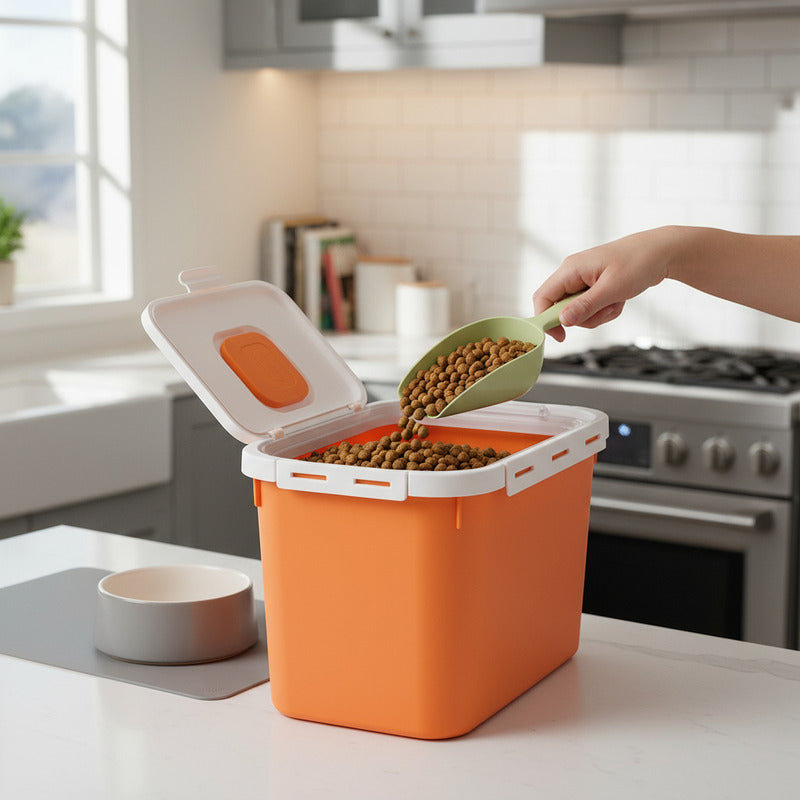 Modelo: Contenedor Hermetico Mascotas 5kg Plastico Pala Grande Gris Blanco Naranjo Blanco Verde Blanco 25x33x19