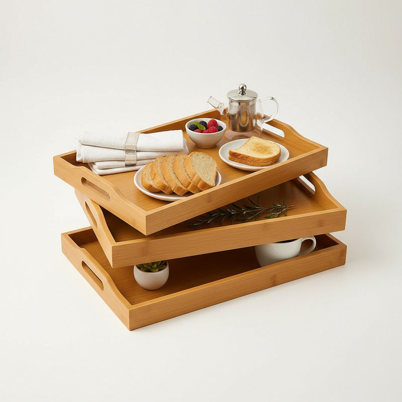 3 Bandejas Para Desayuno Bandeja De Bambu Para Servir Bambu