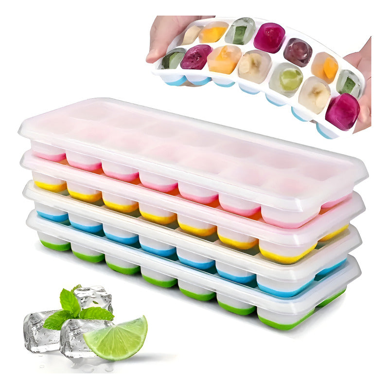 3 Molde De Hielo Cubeta De Hielo De Silicona Con Tapa Hielo Multicolor
