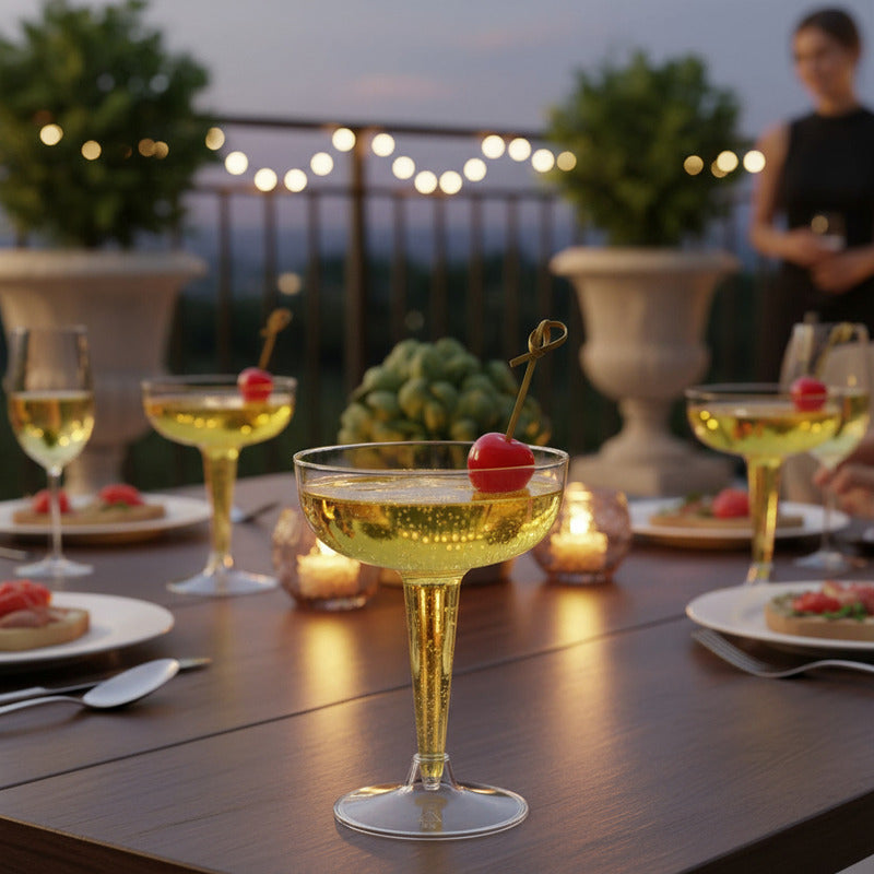 6 Copa Acrilico Copas Champaña + 50 Brochetas Palillo Bambu