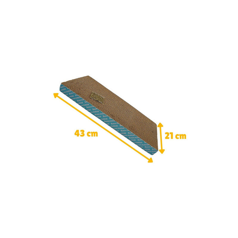 Rascador Para Gatos Cartón Corrugado Practico rascador para gatos servirá para que limen sus uñas, ayuda a aliviar el estrés y la energía acumulada, ayuda a prevenir los arañazos en los muebles y murallas. Fomenta el estiramiento, la flexión y el ejercicio. Tamaño: Alto 29,5 cm, Largo 44 cm, Ancho 4 cm Contenido de la compra: * 1 Rascador Para gatos * 1 Sobre catnip (hierba gatera)