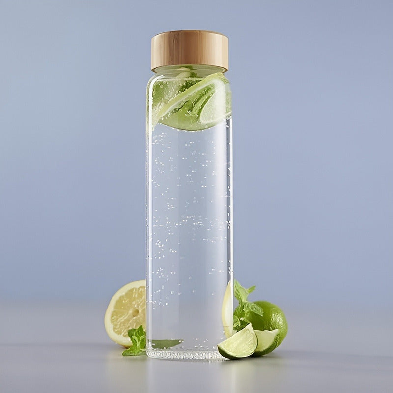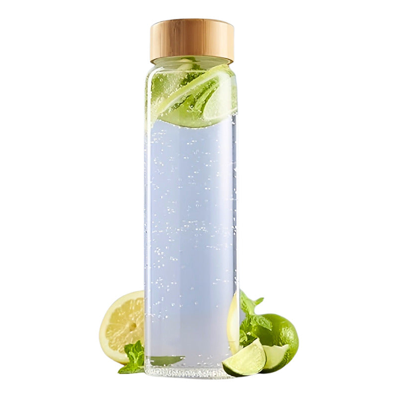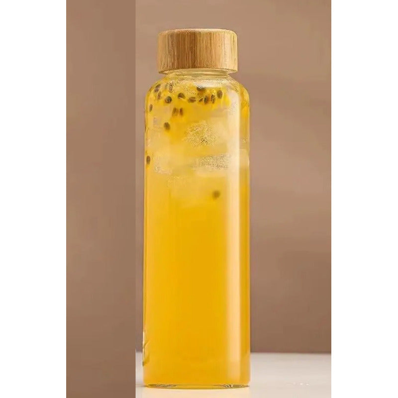 Botella De Vidrio Con Tapa Bambu Botella Agua Jugo Bebida 1l