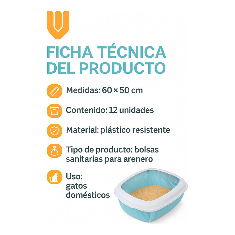 12 Bolsas Arenero Gatos Bolsa Sanitarias Desechables 60x50cm